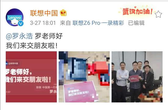实际上,联想中国与罗永浩接触早有端倪。一周前,联想中国官微曾表示,“说说罗老师来卖联想产品,你觉得什么最配?”