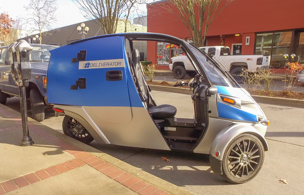 据外媒报道,去年,Arcimoto推出了一款新款的三轮电动三轮车--Deliverator,主要面向本地和最后一英里的送货企业。现在,该公司已经跟Carry It Forward合作,在俄勒冈州尤金市展开实地测试。这是在Arcimoto平台上继Fun Utility Vehicle和Rapid Responder之后建造的第三辆车。