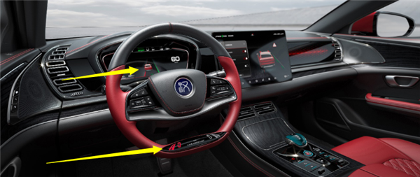 值得一提的是,随着比亚迪和奔驰合作推出腾势X,我们也能在汉的内饰上见到一些带有奔驰的影子,比如全新的双辐式平底方向盘,与奔驰S颇为相似。