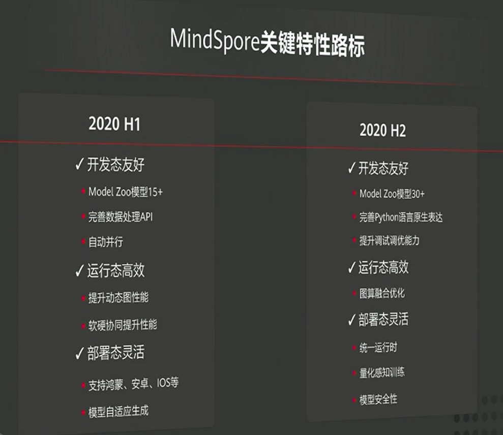 华为同时介绍了接下来 MindSpore 关键特性的开发计划,同样是希望在开发态、运行态与部署态上都有所突破。