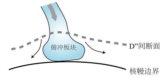 图2 板块俯冲到核幔边界示意图(核幔边界之上约300km的区域被称为D”区,其上界面被称为D”间断面,此处原子的排列方式发生了变化。)(图片来源:中科院青藏高原所)