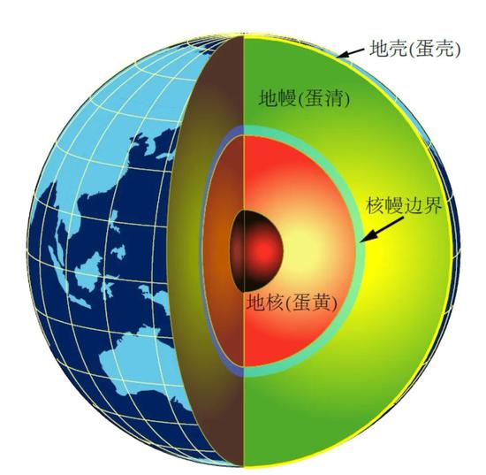假如地球是一个鸡蛋,地核是蛋黄,地幔是蛋清,核幔边界就是蛋清和蛋黄之间的过渡带(图1)。