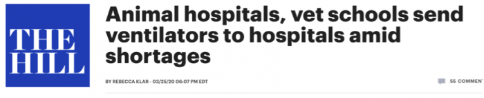 据《国会山报》25日报道,由于缺乏呼吸机,美国一些动物医院在为收治新冠肺炎患者的医院提供呼吸机设备。
