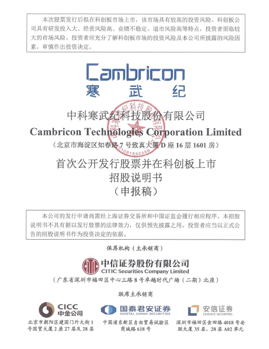 3月26日晚,上海证券交易所发布公告,称已受理中科寒武纪科技股份有限公司(简称“寒武纪”)科创板上市申请,并挂出招股说明书申报稿。这也是去年12月初传出接受科创板上市辅导消息后,寒武纪科创板之路更进一步。