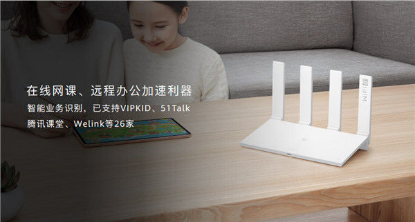 值得注意的是,对于存量Wi-Fi5终端,连接华为Wi-Fi6+路由后可实现速度快一倍。对于华为手机,还提供专属的手游/网课/远程办公加速等。