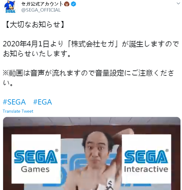 著名老牌游戏公司世嘉3月30日今天宣布,《株式会社SEGA》将于4月1日正式成立,这也是之前股东大会透露的公司重组计划的再次官宣,从4月1日这个喜大普奔的特殊日子起,今后的世嘉将有了新的正式名称株式会社SEGA。