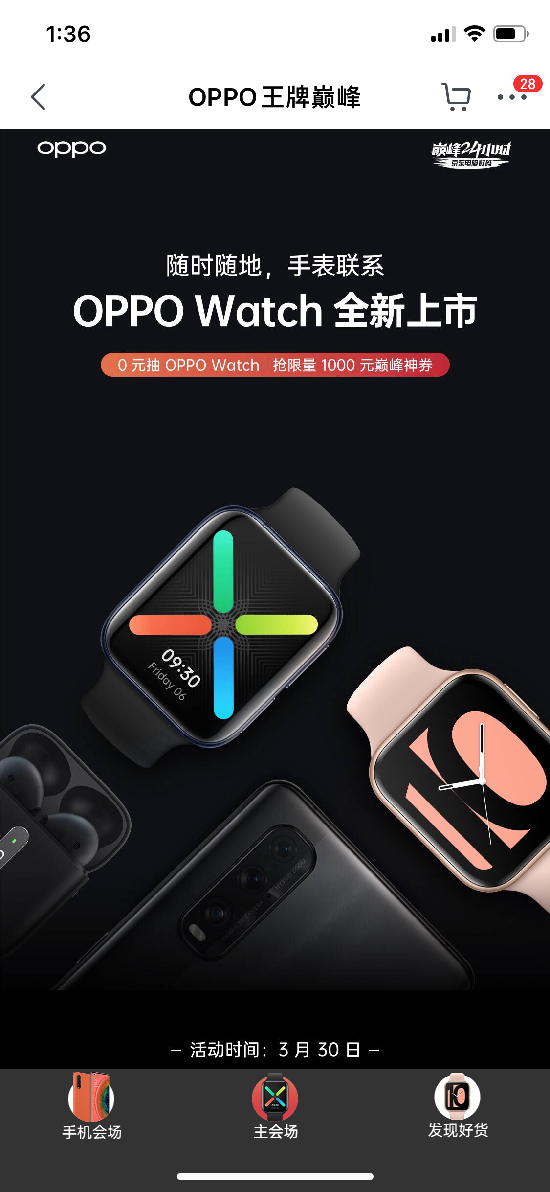今天在京东平台OPPO京东自营官方旗舰店下单购买OPPO Watch,即可享受新品首发百元优惠,还可以参与0元抽奖等活动。用户还可以领取100元优惠券,在下单时享受立减,更有OPPO Watch系专享的1000元巅峰神券,正在限量派送中,今晚8点还可以领一波哦!