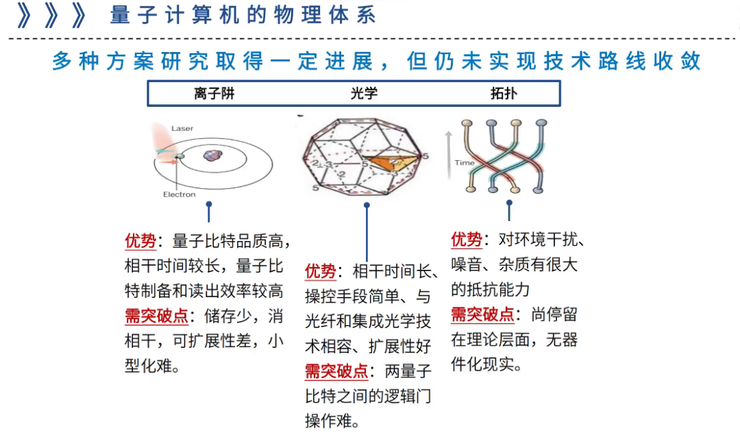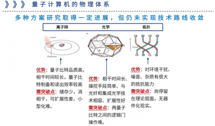 还有拓扑,它的优势包括,对环境干扰噪音、杂质有很大的抵抗能力,但它目前还停留在理论层面,无器件化实现。