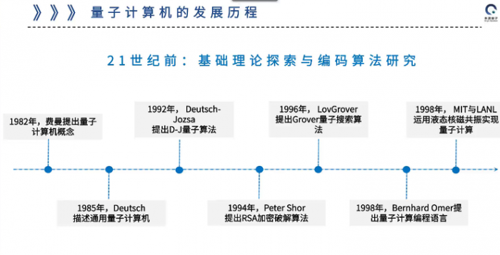 从19世纪80年代开始,欧美已经有科学家提出量子计算机的概念,经过几十年的发展已经有了一些算法,包括破解密码的算法,搜索的算法等等。这些理论构建起了整个量子计算的完备体系。
