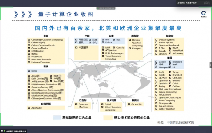 从企业的角度来看,比较大的IT公司,例如谷歌、IBM、微软、英特尔、以及国内的腾讯、阿里巴巴、百度、华为,几乎都会涉及到量子计算,并且全球已经有上百家的量子计算创业公司,发展非常快速,也已经有非常好的成果展现。