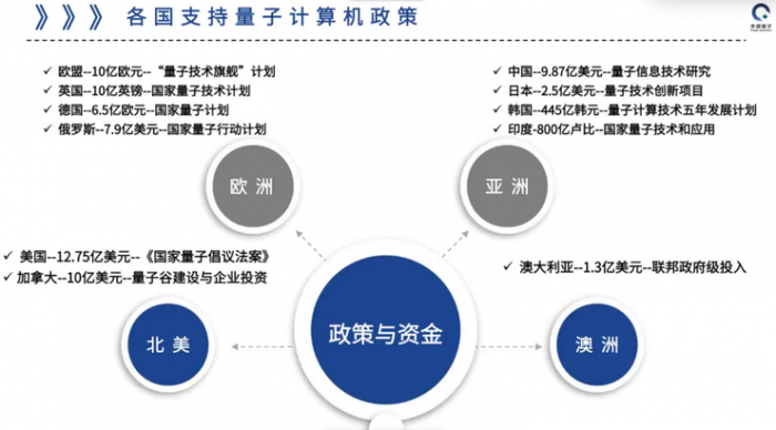 量子计算发展其实也就是最近两三年的时间,欧洲、亚洲、北美、澳洲的一些发达国家,几乎都会涉及到量子计算的方向,很多国家已经上升到了国家层面,比如像美国已经把量子计算提升到阿波罗登月计划的高度。