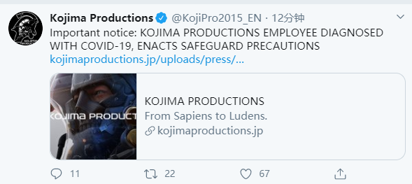 小岛秀夫工作室在今日下午通过官方推特宣布,工作室内部的一名员工感染了新型冠状肺炎病毒。小岛工作室官宣如下:2020年3月30日,小岛秀夫工作室的一名员工核酸检测为阳性。该员工从3月20日起在家隔离,在此之后从未踏入过办公室。在居家隔离期间他接受了PCR检测,在今日获得结果为阳性。