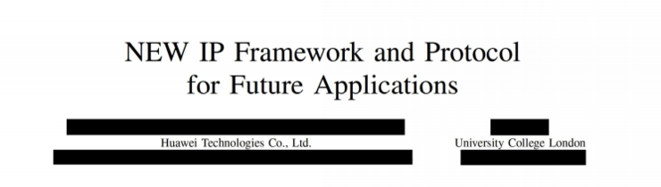 华为在提交的议案文章(题为“New IP framework and Protocol for Future Applications”)中介绍到,New IP 是一种新型互联网协议框架,能够更好地支持新兴网络应用,比如多网络和全息通信等,将从根本上支持网络层的可变长度、多语义地址以及用户定制的网络。