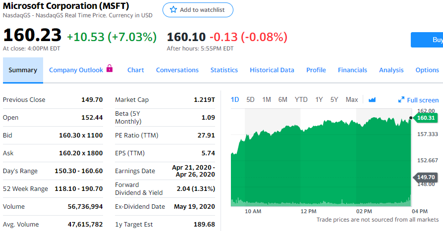 星期一微软股价上涨10.53美元,涨幅为7.03%,报收于160.23美元,达到2周来新高。微软股价上涨正值有报告称其云计算服务需求大涨之际。在要求保持社交距离的地区,微软云服务需求激增775%。微软Teams平台流量也出现大涨,日活跃用户将很快达到4400万。微软并非是产品需求激增的唯一一家公司,Zoom Video、Slack等许多公司也是如此。这些好消息,及其强劲的资产负债表,使得微软股票受到投资者追捧。去年夏季前,多头一直能在微软股票上赚到钱。但整个夏季,微软股价始终没有突破140美元的阻力位。10月份,微软股价终于突破这一阻力价位,一路上涨至最高190美元。在最近的下跌中,微软股价的底为135美元,在6个交易日中,约5天都是如此。之后的上涨使得微软股价涨到140美元和200日均线上方。多头需要认识到微软重夺160美元价位和100日均线。微软股价超过160美元,会使50日均线接近165美元,之后可能会进一步上涨至175美元。另一方面,多头需要将200日均线看作支撑价位。微软股价筑底和最近反弹后,多头可以考虑逢低吸入。