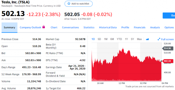 在大盘上涨的情况下,今天特斯拉股价下跌12.23美元,跌幅为2.38%,报收于502.13美元。对疫情以及对第一季度汽车交付量影响的担忧是一个原因。摩根士丹利分析师亚当·乔纳斯(Adam Jonas)就担心对特斯拉销量的预期太高了。乔纳斯星期一发表投资报告称,“通常情况下,一个季度最后2周在特斯拉交付量中所占的比例极高。”由于最近数周疫情在欧美加速蔓延,第一季度特斯拉遇到更大困难。乔纳斯预计特斯拉第一季度交付量为8.8万辆,低于9.7万的华尔街预期平均值,去年第四季度特斯拉交付量为12万辆。乔纳斯和华尔街预期之间的差距相当大,但在疫情愈演愈烈之际,华尔街的预期意义不大,毕竟这一预期是在疫情爆发前作出的。许多投资者预计特斯拉第一季度交付量略高于8万辆。New Street Research分析师皮埃尔·费拉古(Pierre Ferragu)预计特斯拉第一季度交付量为8万辆,第二季度为7.2万辆。他对特斯拉股票评级为“买入”,把目标股价定为800美元,并认为特斯拉长期前景仍然是光明的。乔纳斯对特斯拉股票评级为“持有”,把目标股价定为440美元。Wedbush把特斯拉第一季度交付量预期由10.5万辆下调至8.2万辆。如果疫情持续到5月,第二季度交付量还会环比下降。与2月的52周高点相比,特斯拉股价下跌了约50%,但今年以来累计上涨了约20%。