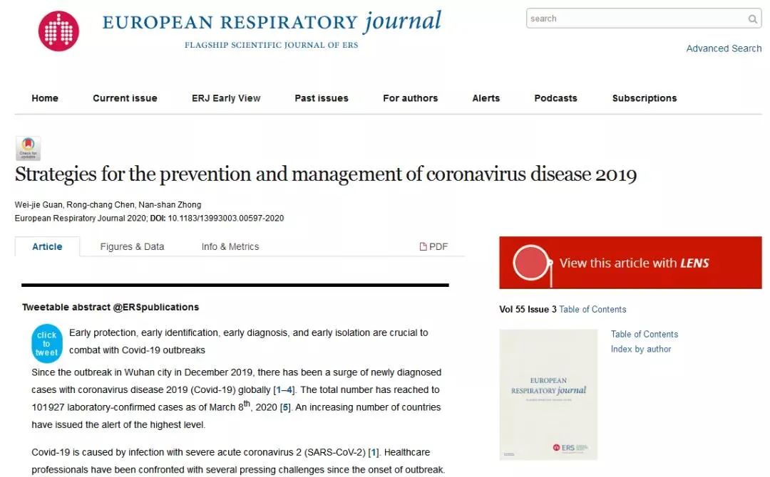 据央视新闻3月30日消息,受《欧洲呼吸杂志》邀请,钟南山院士与广州呼吸健康研究院关伟杰副研究员、深圳市人民医院陈荣昌教授发表述评文章,向全球同行介绍了新冠疫情防控的经验。