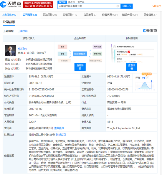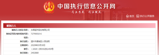 3月31日上午消息,中国执行信息公开网显示,3月30日,永辉超市的运营主体永辉超市股份有限公司被温州市鹿城区人民法院列为被执行人,执行标的为2402880。公开数据显示,永辉超市股份有限公司成立于2001年4月,注册资本约人民币95.7亿元,法定代表人为永辉超市创始人兼董事长张轩松,公司经营范围包括零售和批发预包装食品、散装食品、保健食品、乳制品(含婴幼儿配方乳粉);零售和批发医疗器械;物业管理、仓储服务、广告服务;日用百货等的零售、批发等。