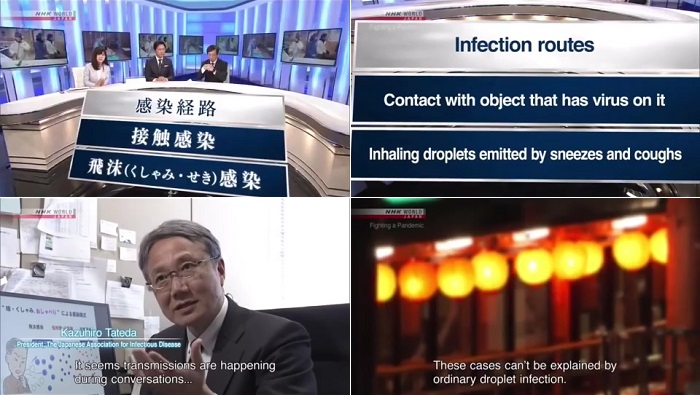 为研究患者在咳嗽、喷嚏、谈话期间的飞沫散布情况,日本 NHK 电视台与传染病协会合作拍摄了一段视频。