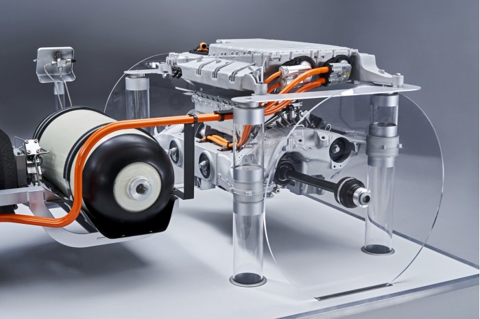 为此,这家公司展示了一套原型并提供了为i Hydrogen Next概念车打造的燃料电池传动系统的初步细节信息。两个700bar的压力罐能够容纳下6公斤的压缩氢。如果这款车能够达到跟丰田Mirai相同的燃油效率,那么它的续航里程将达到750公里左右。