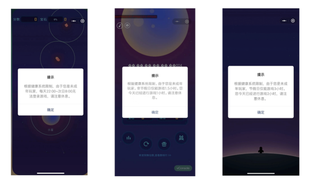 验证为未成年人的小游戏用户将受到游戏时段和游戏时长的限制:每日22时至次日8时,未成年人用户将无法使用小游戏服务,法定节假日未成年用户游戏时长每日累计不得超过3小时,其他时间每日累计不得超过1.5小时。