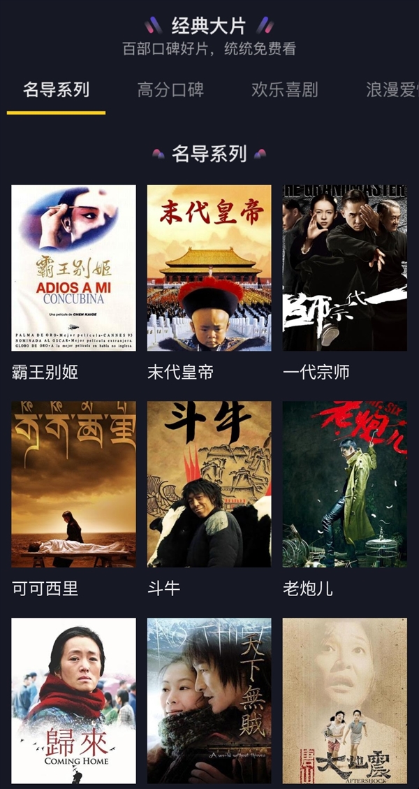 如果你想看陈凯歌、陈可辛、冯小刚、张艺谋...这些华语顶级导演的名作,可在“名导系列”专栏查询;如果你想一次性刷够话语高口碑片单,则可以去“高分口碑”专栏;如果生活缺点笑声,想拯救不开心,那么可移步“欢乐喜剧”专栏。