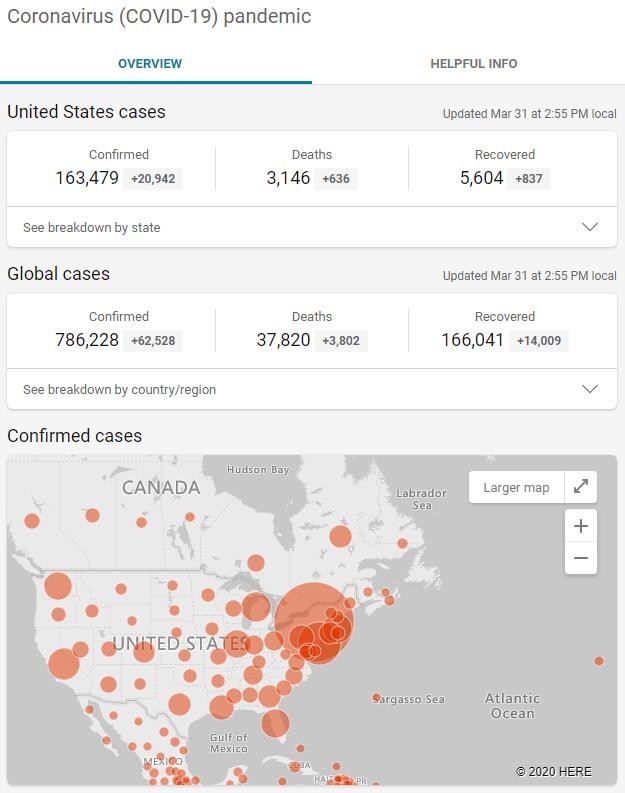 根据约翰·霍普金斯大学(Johns Hopkins University)的最新数据,越来越多的美国人被检出了 COVID-19 阳性。截至周一晚上,感染总数已超过 16.4 万人。此前到目前为止,已有 3000 多人死于该病毒,远超 2001 年 9/11 恐怖袭击中丧生的任务。