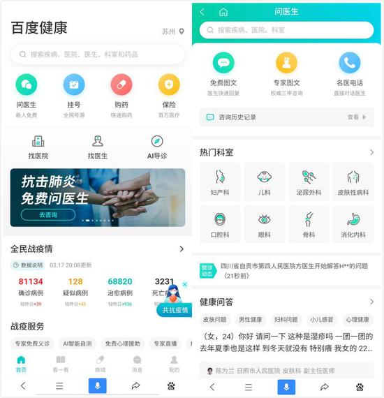 联合了平安好医生、春雨医生等平台的百度,截至2月20日,接受了超过670万人次的问医生,页面浏览量超过2.6亿人次。