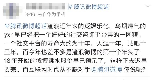 除此之外,这个超话还有另一种声音:吐槽新浪微博。