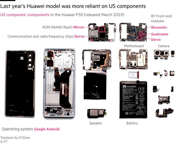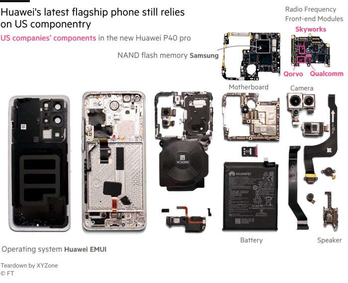 华为P40系列新机发布后引发很多讨论,老外也对其软硬件很感兴趣,包括HMS、AppGallery、拍照、元器件供应等。本周,英国金融时报对P40的拆解发现,尽管华为在元器件方面很大程度上摆脱了对美国公司的依赖,但比例并没有降到零。