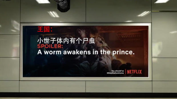 最近,一组剧透Netflix剧集的户外广告牌火了。如果疫情期间不好好在家隔离,还到处乱跑,那么可能会撞见《怪奇物语》《王国》《毒枭》《爱情盲选》等热门剧集的重大剧透。
