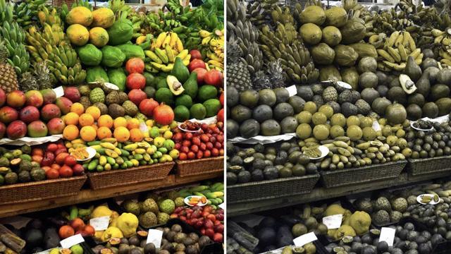 左为正常视觉,右为严重色弱/色盲▼