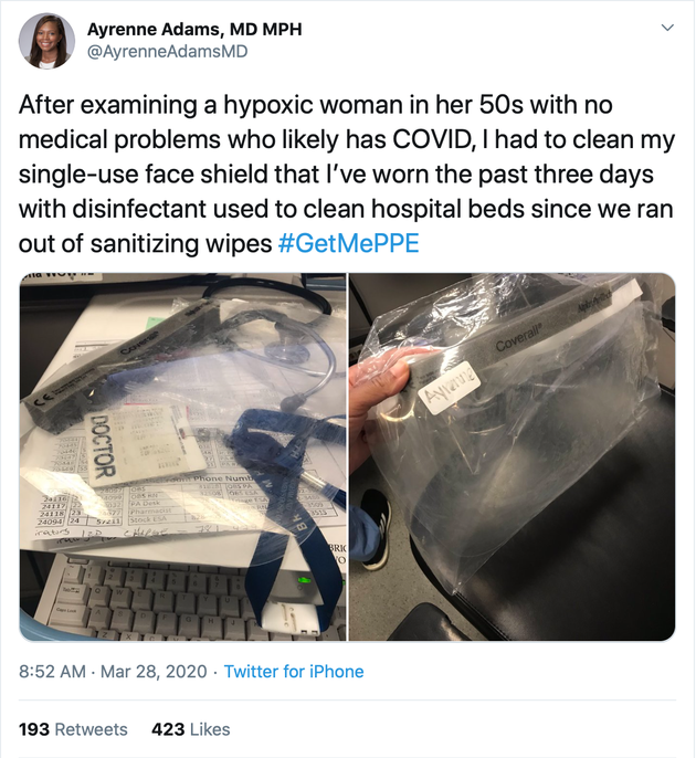 一位马萨诸塞州波士顿医生在网上吐槽,自己不得不把一次性的护目镜洗洗用了三天,医院连给病床消毒的湿巾都没有。"给我防护用品"(GetMePPE)也成为了网上的热门话题。而当医护人员选择公开发声,为自己争取安全保障时,一些医院为了自身形象,甚至用解雇来威胁他们噤声。这样的情形似曾相识,只能说人性丑恶都是一样的。