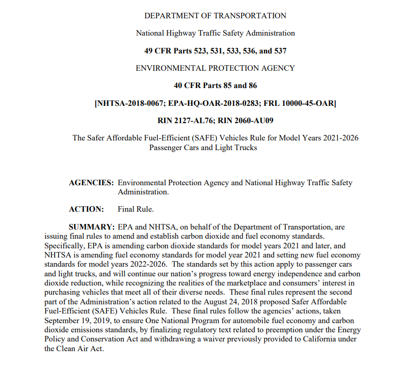 根据新规定,汽车制造商现在必须通过把2021-2026年的平均每加仑汽油的燃油效率从原来的5%降低到1.5%,最终平均达到每加仑40英里左右。根据先前的规则,汽车制造商必须将其平均燃油经济性提高5%,目标是在2026年达到每加仑54英里的目标。