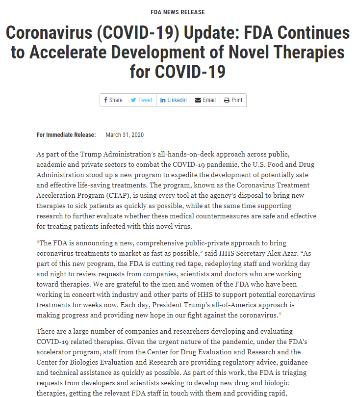 就其传播和影响而言,当前的新冠病毒大流行是空前的,至少就现代医学时代的病毒爆发而言。因此,FDA绝对需要以独特的方式解决这种情况。