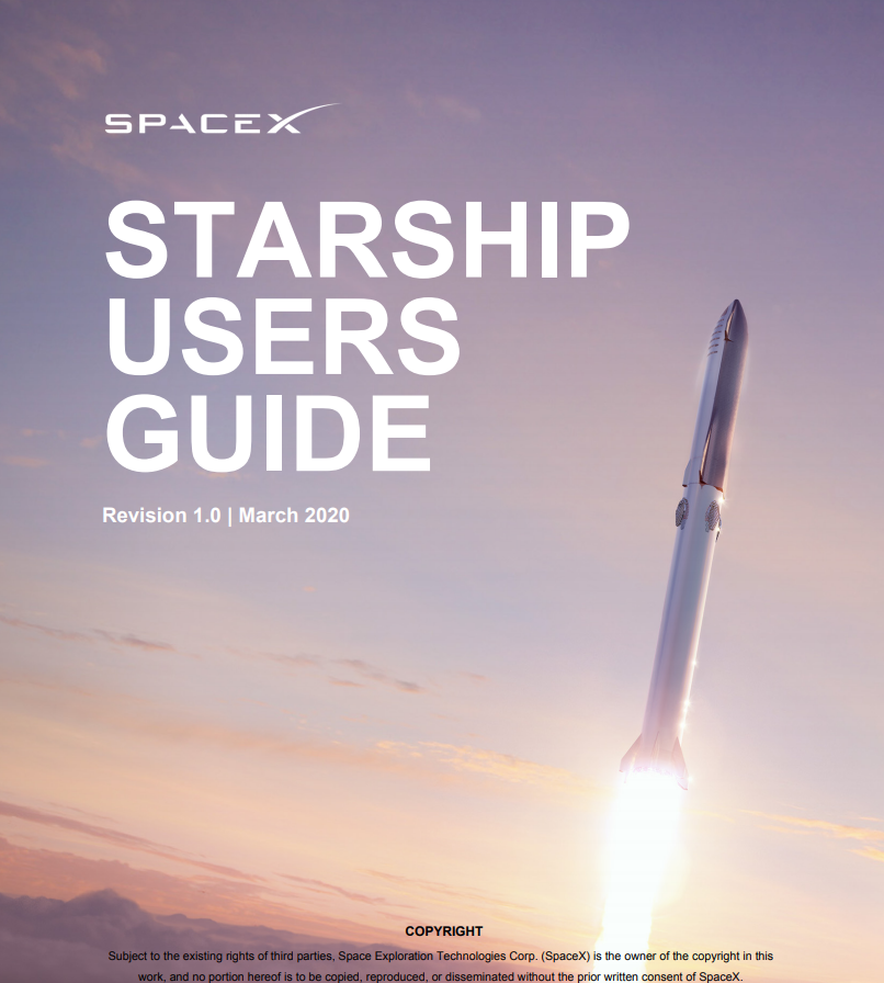 据外媒CNET报道,SpaceX近日在其网站上发布了《星际飞船用户指南》(Starship Users Guide )。该公司星际飞船的潜在客户现在可以查看一份精心设计的小册子,其中涵盖了有效载荷量、声学、性能和机组配置等主题。