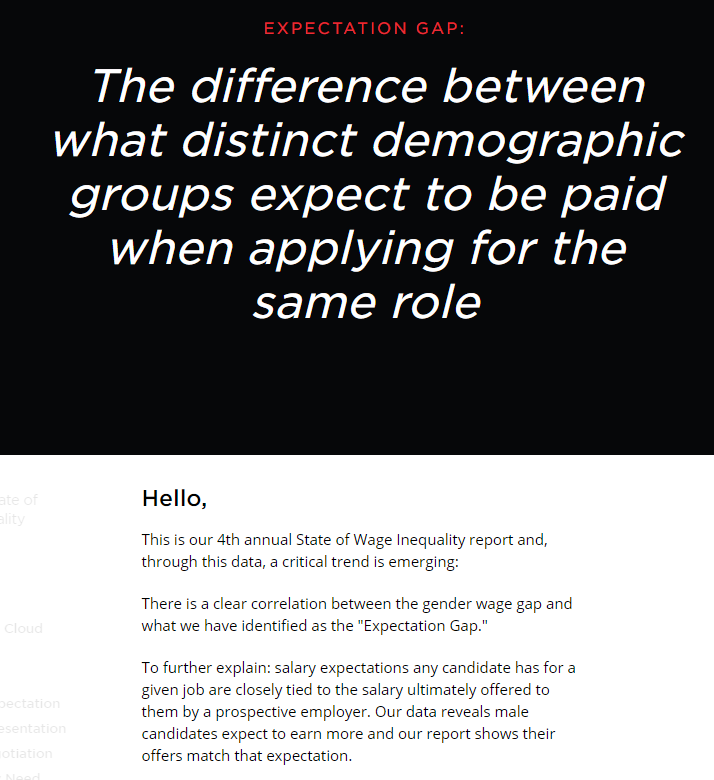 Hired首席执行官Mehul Patel在报告中说:“任何候选人对给定职位的期望薪资都与准雇主最终向他们提供的薪水紧密相关。我们的数据显示,男性候选人期望获得更多收入,我们的报告显示,他们提出的期望薪资符合预期。” 想法是,在同一家公司申请相同工作岗位时,在65%的情况下,提出的期望薪资低于男性。