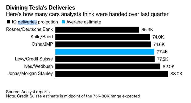 乔纳斯预计,特斯拉将在第一季度交付8.8万辆汽车,是接受彭博社调查的6位分析师中最乐观的一位。他警告称,这一预期存在“下行风险”。他预计投资者将会在接下来几天把注意力放在第二季度需求发展情况、特斯拉的烧钱以及马斯克曾许诺4月举行的电池日活动。