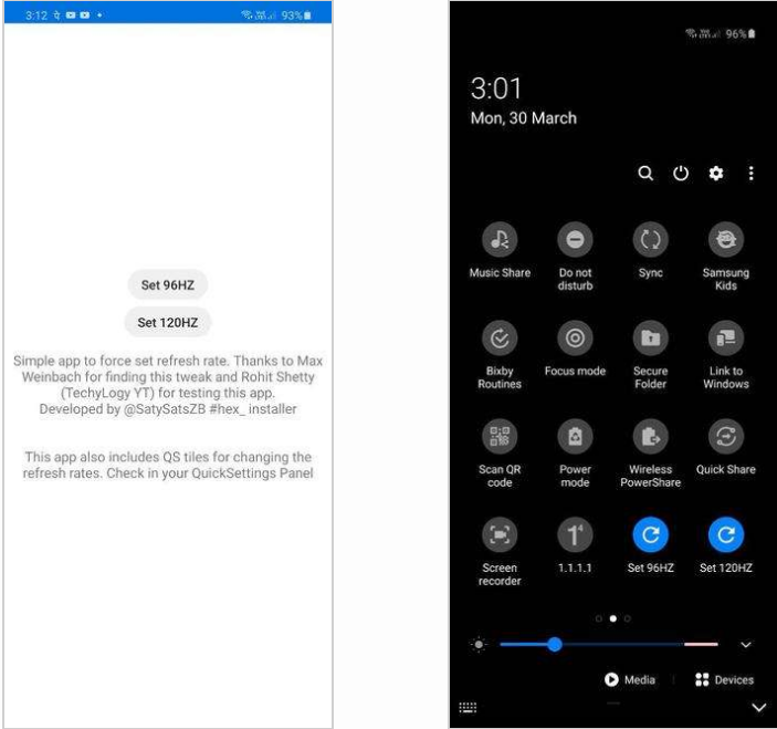现在,XDA的大神通过挖掘发现,S20实际上还暗藏了96Hz刷新率模式,如果你觉得90Hz够用且想进一步兼顾续航,不妨尝试打开。