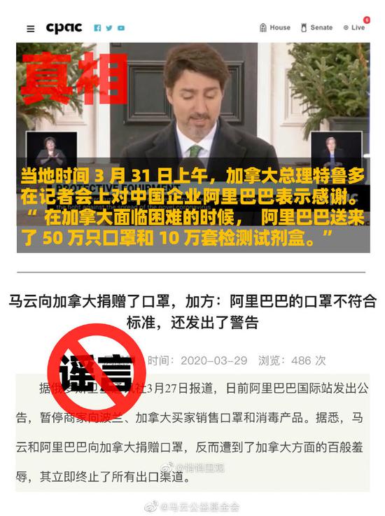 "马云公益基金会"表示,基金会对于捐赠的每一批物资,都认真对待,严格按照国家标准寻找有资质的供货商或是厂商。