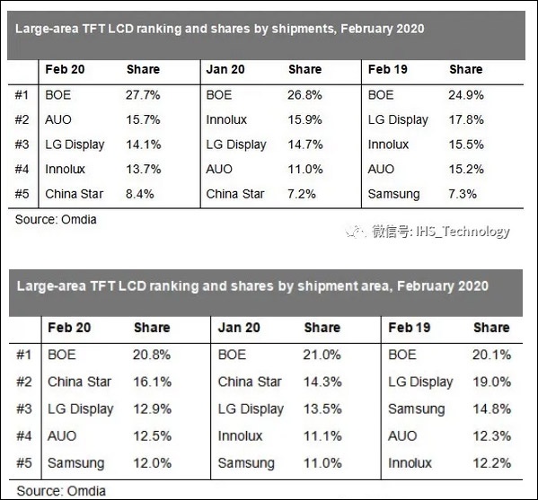 而调研机构IHS Markit3月24日的最新报告显示,随着2019年第四季开始的韩、台厂商大幅调低稼动率或者关停部分产能,中国大陆厂商的大尺寸LCD面板出货面积份额进一步提升。