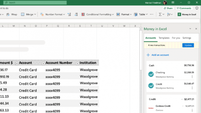 包括了 Excel 为用户提供的更加清晰的财务整理,可对关联的金额数进行管理、跟踪和分析支出。该功能将连接到用户的银行、信用卡帐户、导入交易和帐户余额,并提供个性化的意见。