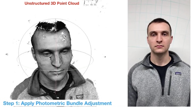 首先,研究人员使用智能手机拍摄围绕对象头部的 15~20 秒短视频。为收集尽可能多的数据(图像帧数),Lucey 团队还使用了 iPhone X 的慢速摄影功能。