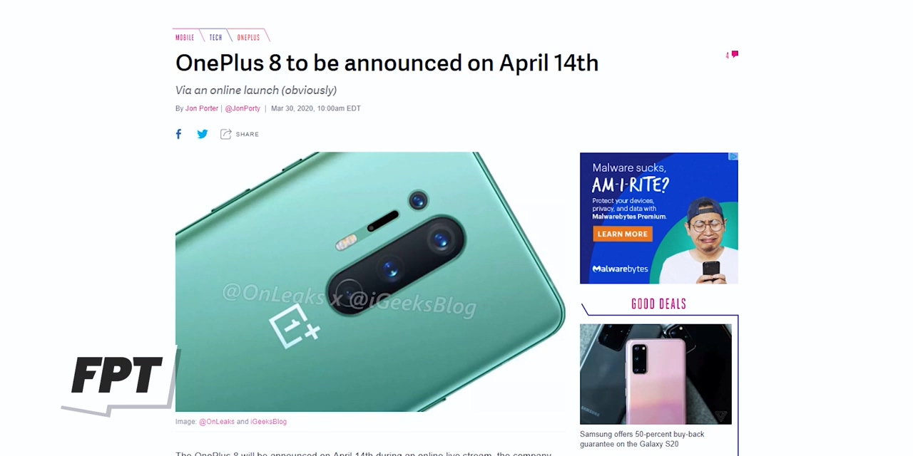 这次,预计苹果将通过新闻稿发布iPhone 9,而OnePlus将在线播放OnePlus 8活动。普罗瑟表示,iPhone 9预计将于4月24日上市。目前尚无OnePlus 8 Pro或OnePlus 8的发售日期。