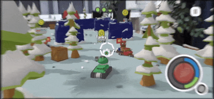 在本地多人游戏模式下,《AR Tanks》允许最多四位玩家在同一个空间内一起游戏,玩家们可以在游戏沙盘地图上战斗、展示最新的装甲、武器、辅助能力和配件,同时游戏进程中还会空投爆炸物、健康包等,增加更多不确定性体验。