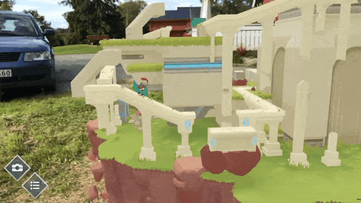 扫描完成之后,会建立一个游戏 3D 建筑,所有的游戏操作将在这个范围内进行。由于是 AR 游戏,所以建议你多围绕 3D 建筑走动来获取不同的攻击角度噢。