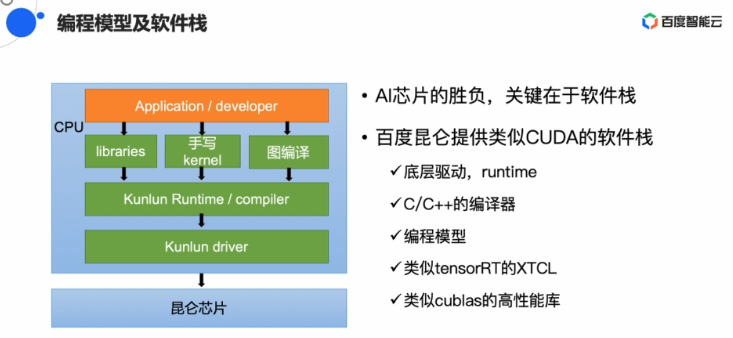 在灵活性和易用性方面,昆仑面向开发者提供类似英伟达CUDA的软件栈,可以通过C/C++语言进行编程,降低开发者的开发难度。
