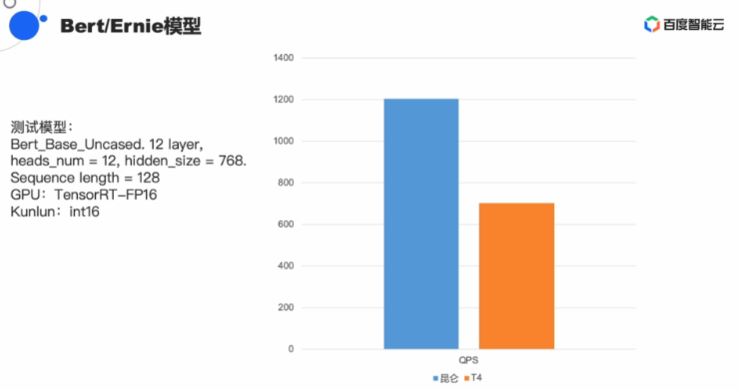在语音常用的Bert/Ernie测试模型下,昆仑也有明显性能优势。