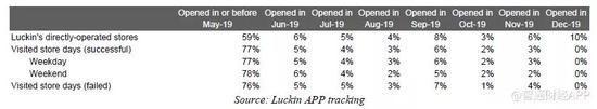 在我们的2019年第四季度到2020年1月的跟踪期间,瑞幸APP每家门店的平均DAU为0.59K,而瑞幸APP 2019年第三季度和2019年第四季度每家门店的平均DAU分别比我们的跟踪期间低11%和0%。我们的跟踪结果很可能低估了瑞幸2019年第三季度和2019年第四季度每家店的日销售额。