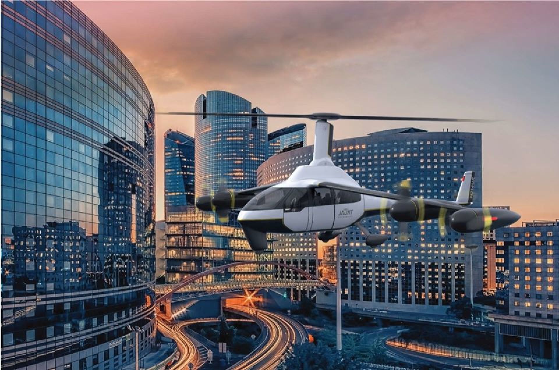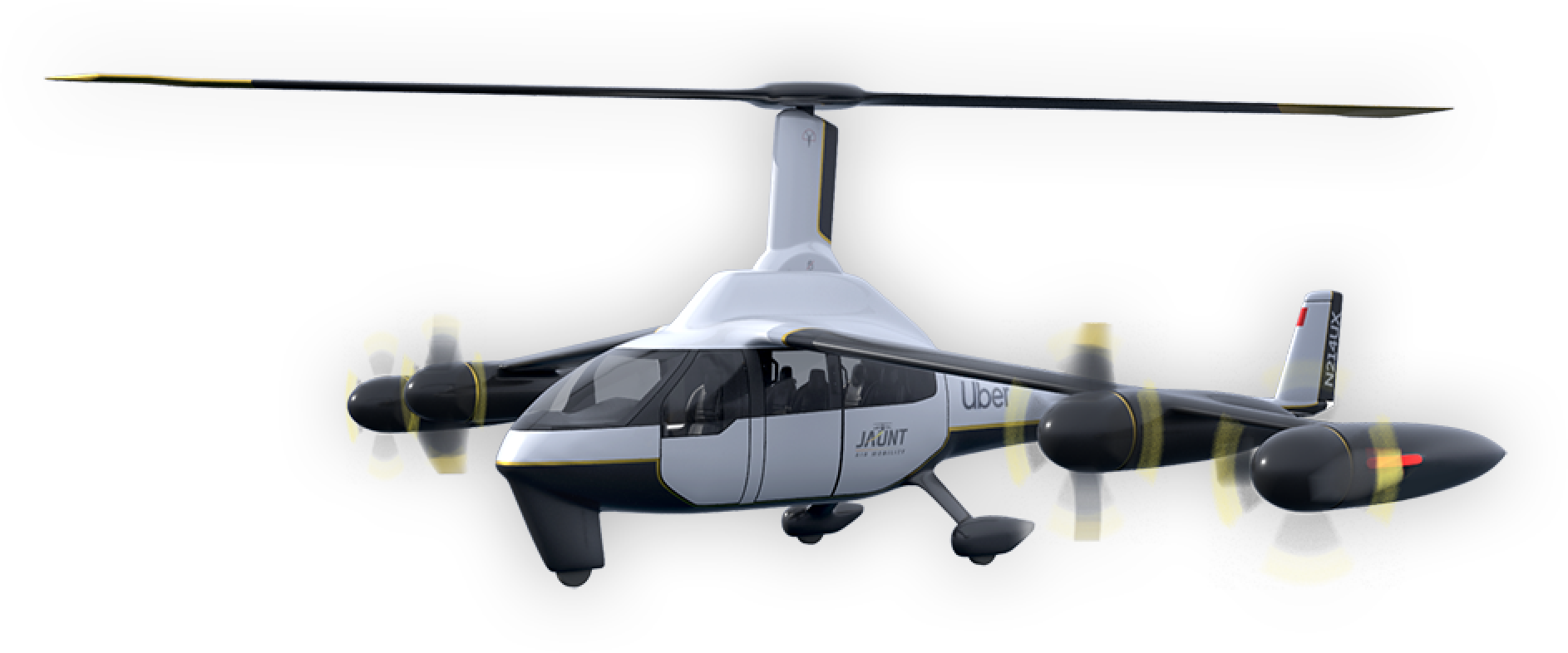 缓慢的顶部旋翼则能使得飞机变得更加安静特别是当在巡航飞行的时候。降噪将是这个领域的一个重要目标,特别是飞行队伍要开始在城市地区运送人们的话。Jaunt公司预计,这款飞机的噪音水平将比普通直升机或固定翼飞机要低50%至66%。