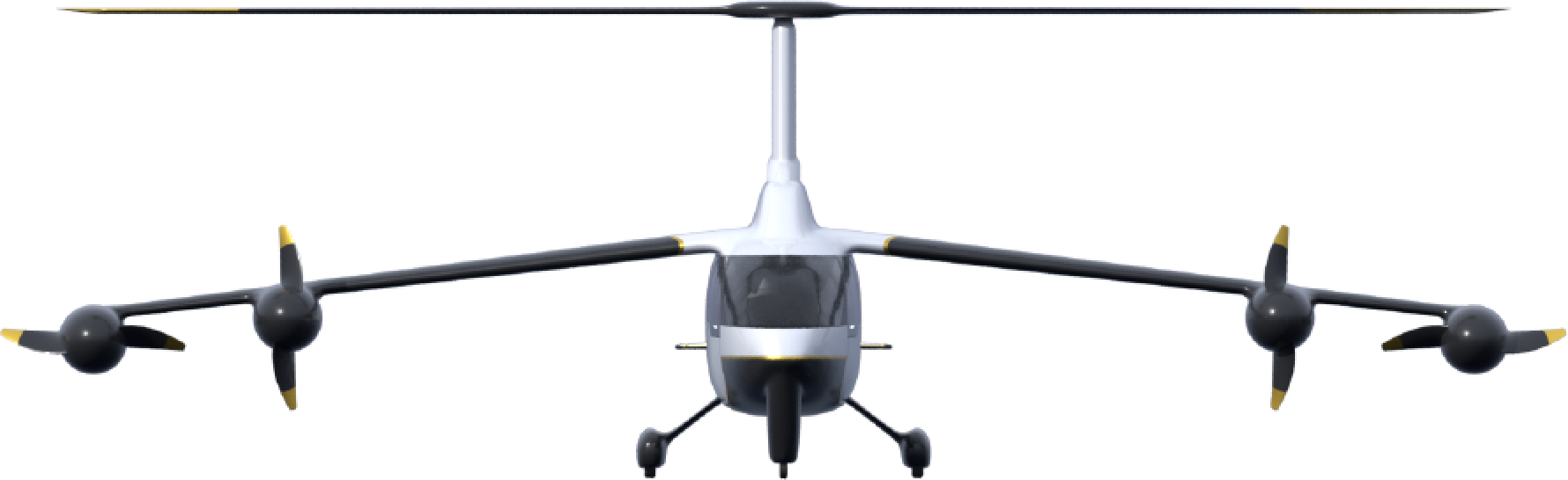 ROSA通过利用巨大、缓慢的顶部旋翼展开VTOL飞行,它不需要尾桨来平衡主旋翼的扭矩,因为机翼上有四个大型电动支柱。这些装置可以让飞机在悬停时不陷入尾旋,然后提供向前推力让飞机达到巡航速度。一旦它达到一定的速度,顶部的旋翼就会完全卸载以实现低阻力、高效率的飞行,因为此时机翼会产生升力。